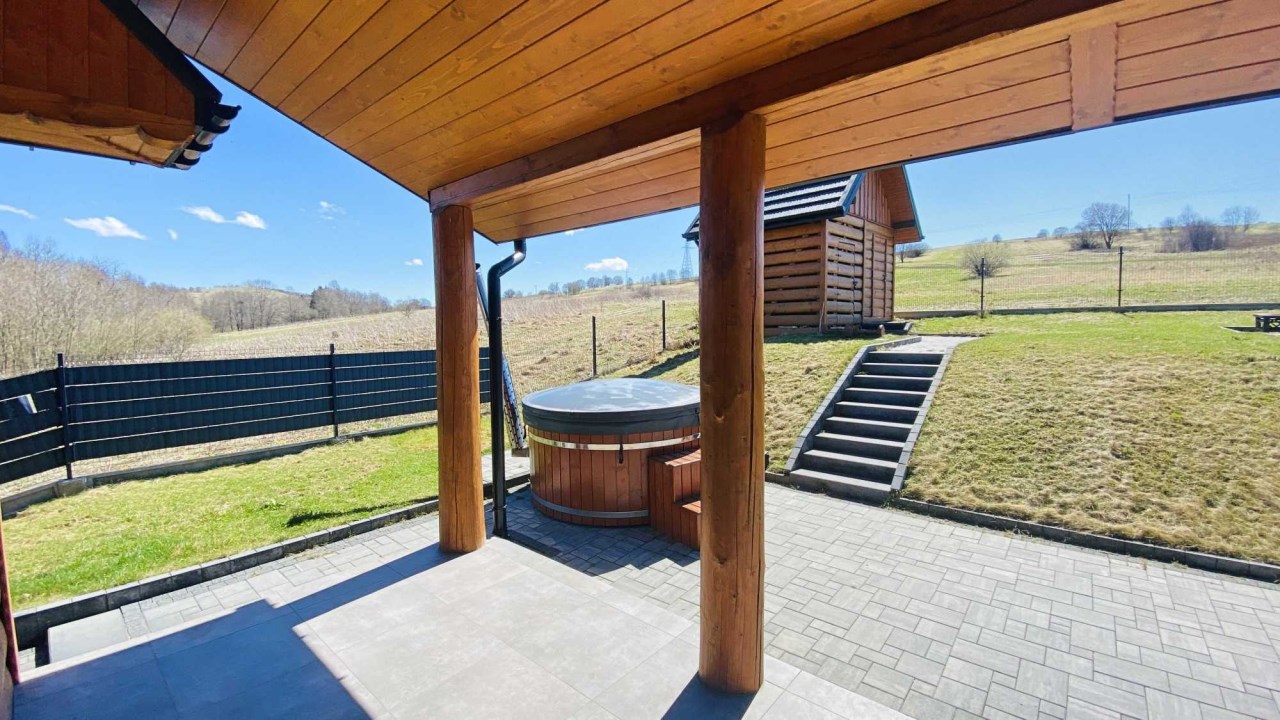 BEZPIECZEŃSTWO I RELAKS: Monitoring zewnętrzny (4 kamery) oraz ogrzewana balia ogrodowa – Twoja prywatna strefa wellness po dniu na stoku.